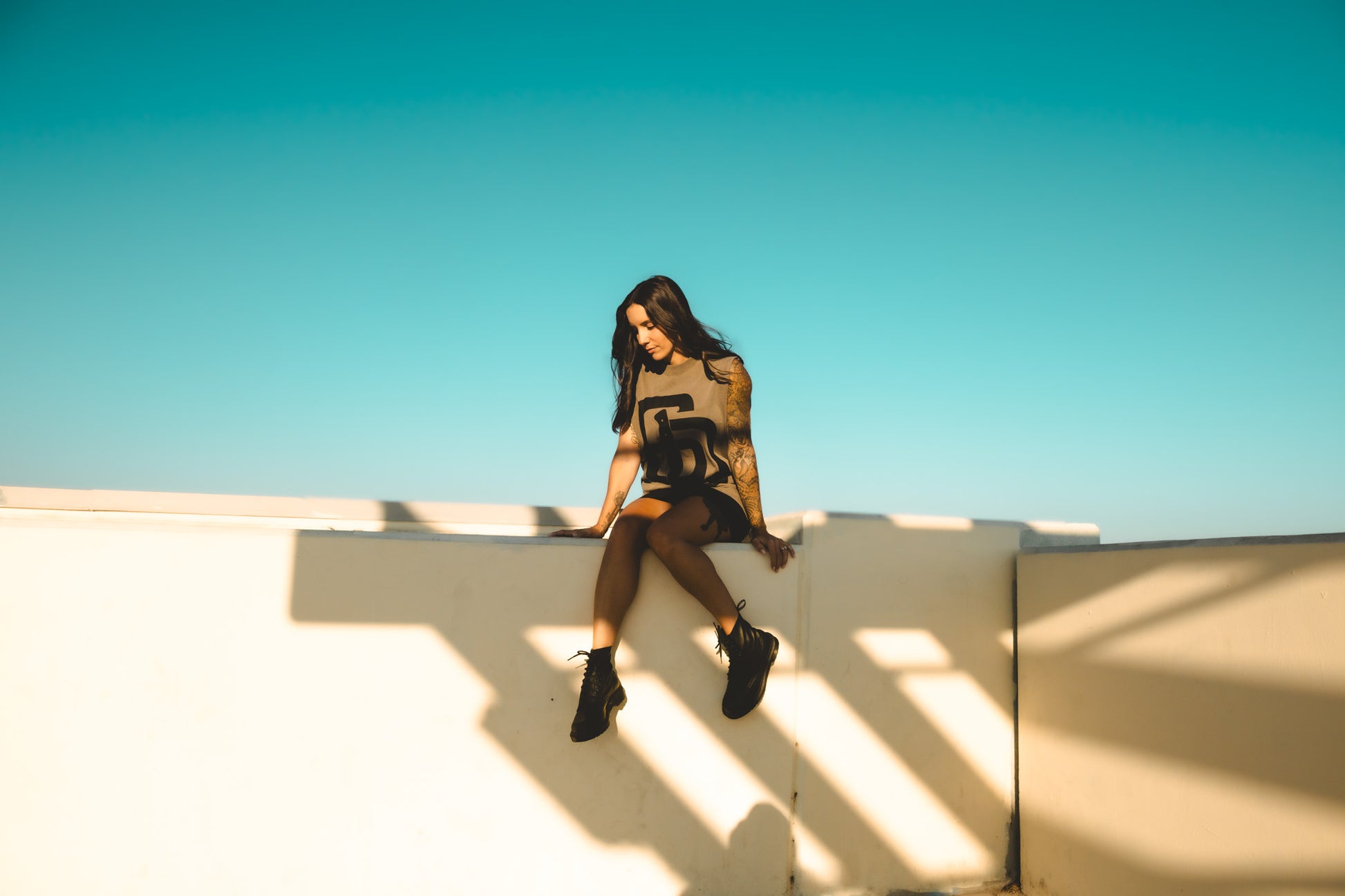 Fit RelaxedFabric Heavy weight, 7.1 oz, 16-singles, 100% carded cottonConstruction Wide neck ribbing with twin stitching, wide shoulders, raw armholes, side seamed, shoulder to shoulder tape, double needle hems, garment dyed, preshrunk to minimise shrinkage